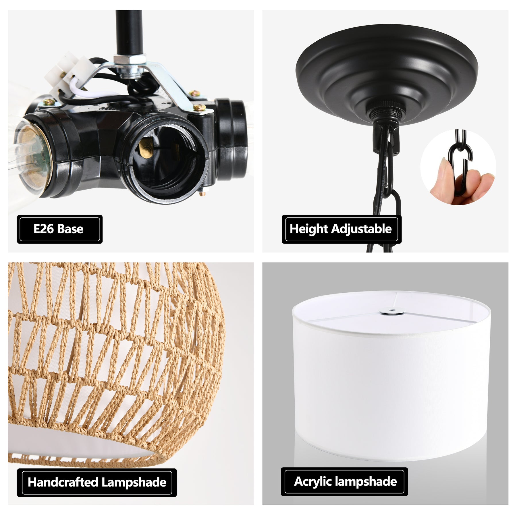 Product Name:18" Farmhouse Pendant Light with Adjustable Height, Boho Woven Jute Rope Hanging Ceiling Light Fixture, E26 Base, 60W Max, Compatible with Flat, Vaulted, and Sloped Ceil (Bulb Not Included)